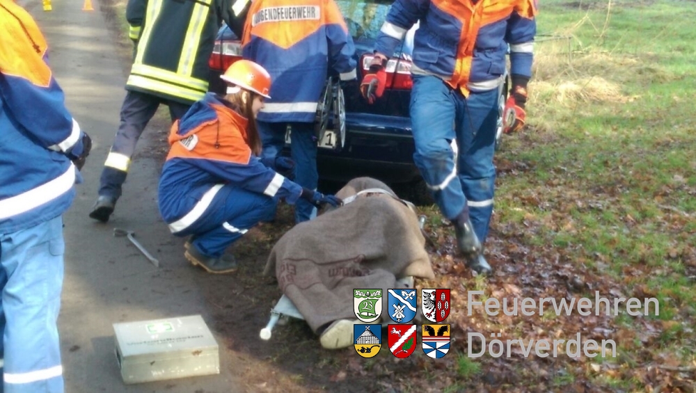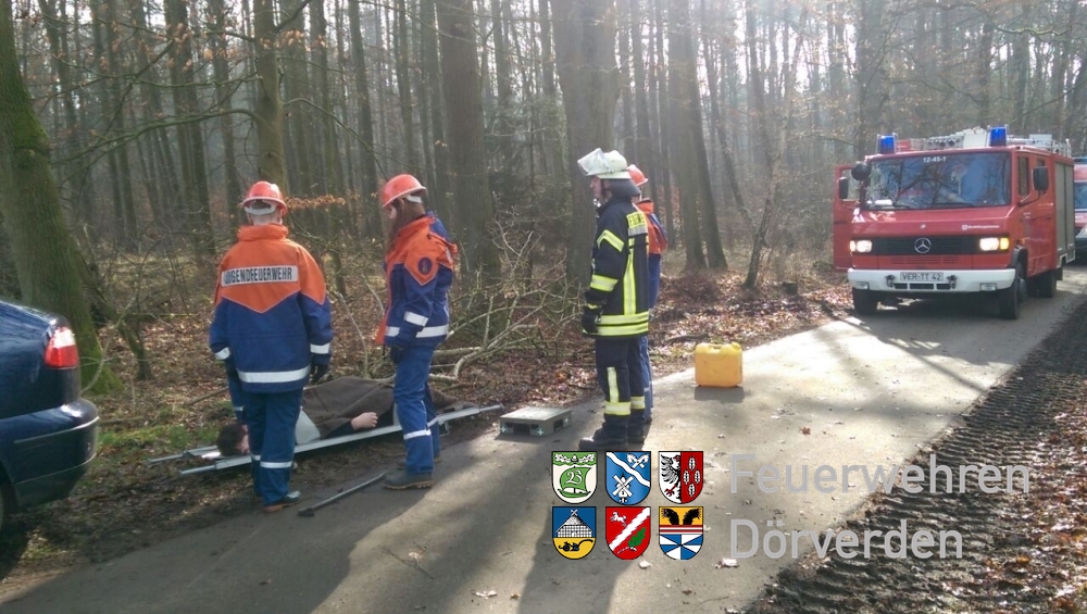 Am 28.02.2015 machte die Jugendfeuerwehr einen Übungsdienst zu einem Verkehrsunfall. Die Aufgabe bestand für die Jugendlichen darin, eine verletzte Person aus dem verunfallten Fahrzeug zu retten, den dreifachen Brandschutz sicher zu stellen und die Person zu betreuen während die erste Hilfe angewendet wurde.