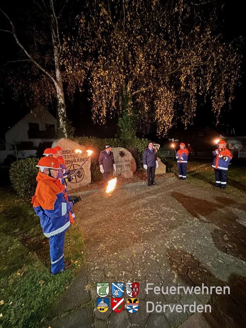 Anlässlich des Volkstrauertags gedenken die Kameradinnen und Kameraden der Feuerwehr Barme, sowie die Bürgerinnen und Bürger, den verstorbenen Soldaten am Samstagabend, mit einer Gedenkfeier am Ehrenmal in Barme. Traditionell gab es eine Ansprache durch Pastor Görnandt, begleitet durch den Posaunenchor Dörverden. Zum Ende der Veranstaltung wurde der Kranz durch zwei Feuerwehrkameraden auf dem Ehrenmal niedergelegt. Die Jugendfeuerwehr leuchtete die Gedenkfeier, wie auch schon in den vergangenen Jahren, mit Fackeln aus.