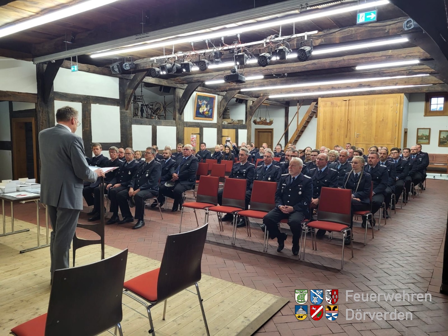 Am Freitagabend konnten Bürgermeister Alexander von Seggern und Gemeindebrandmeister Andreas Thölke den Kameraden der sechs Ortsfeuerwehren, mit etwas Verzögerung, Ihren Dank für die Unterstützung und geleistete Arbeit beim Hochwasser 2023/2024 aussprechen. Ihnen wurde die Hochwasser-Ehrennadel 2023, die von der Landesregierung Niedersachen gestiftet wurde, sowie eine Urkunde überreicht.
