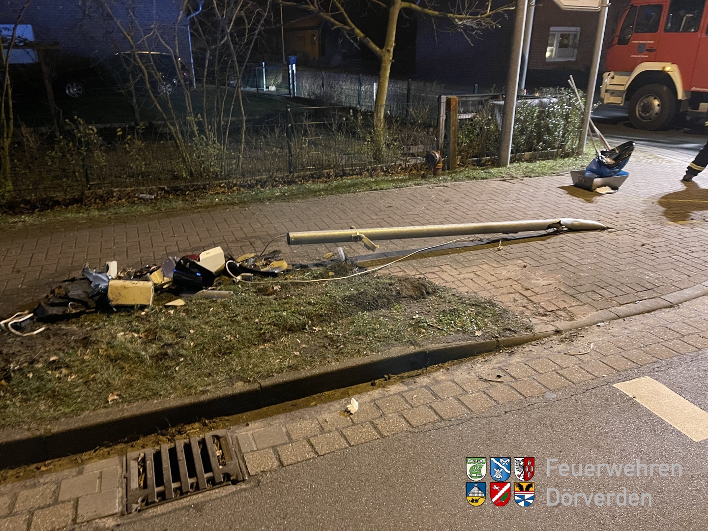 Eine umgestürzte Ampel wurde durch die Kreisstraßenmeisterei gesichert.