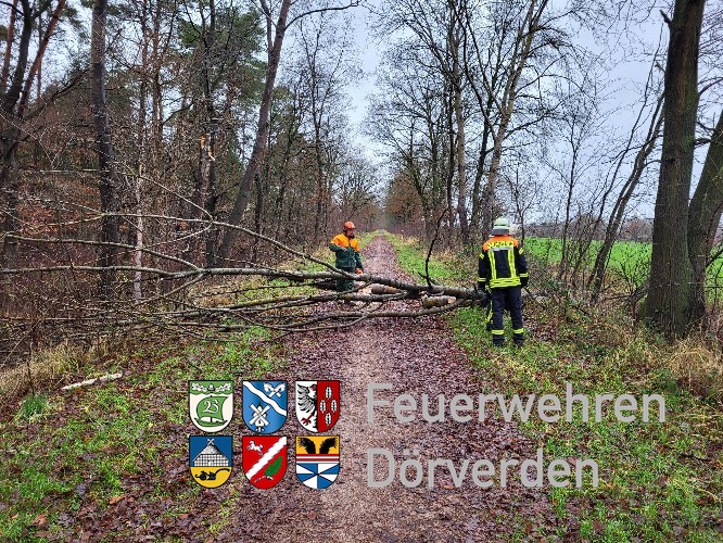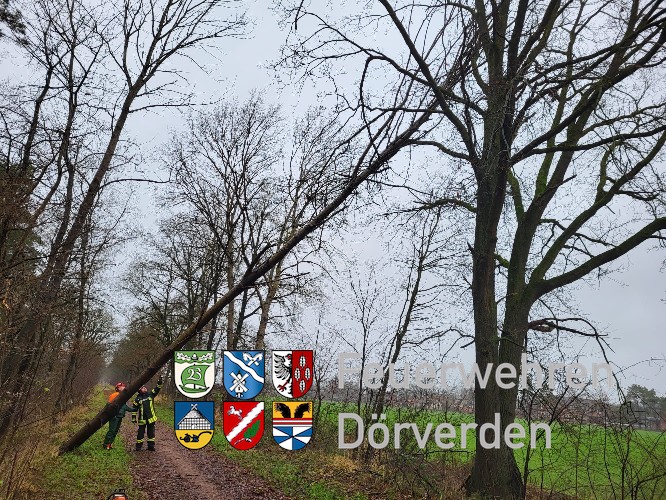 Am frühen Nachmittag des Heilig Abends wurde die Feuerwehr Hülsen zu einem umgekippten Baum auf dem Radweg (ehemalige Bahntrasse) in Höhe des Mühlenweges alarmiert. Dort war ein Baum über den Radweg gekippt und hing mit der Krone in einem anderen Baum fest. Die Kameraden beseitigten das Hindernis und räumten den Rest des Baumes beiseite.