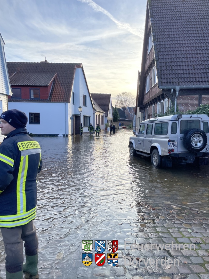 Wieder wurde die Ortsfeuerwehr Stedorf zur Unterstützung der sich im Hochwassereinsatz befindlichen Kräfte der Stadtfeuerwehr Verden in die Kleine Fischerstraße nach Verden alarmiert. Die ursprünglich beauftragte Sichtung und Einleitung von Maßnahmen zur Absicherung eines durch das Hochwasser einsturzgefährdeten Gebäudes konnte von einer Verdener Ortsfeuerwehr übernommen werden. Die Stedorfer Kameraden übernahmen daraufhin die Errichtung eines Sicherungswalls um einen wichtigen, in der Kleine Fischerstraße befindlichen Stromverteilungskasten. Des Weiteren wurde die Hochwassersicherung eines Wohnhauses in der Lahusenstraße verbessert. Hier wurden von den Bewohnern nicht beachtete Kellerlüftungen mit Sandsäcken verschlossen. Von dort aus wurden die Stedorfer Kameraden in den zentralen Bereitstellungsraum befohlen. Hier konnte man sich mit Getränken und Snacks stärken. Da die Lage es zuließ, konnten die Stedorfer Einsatzkräfte aus dem Bereitstellungsraum heraus aus dem Einsatz entlassen werden.
