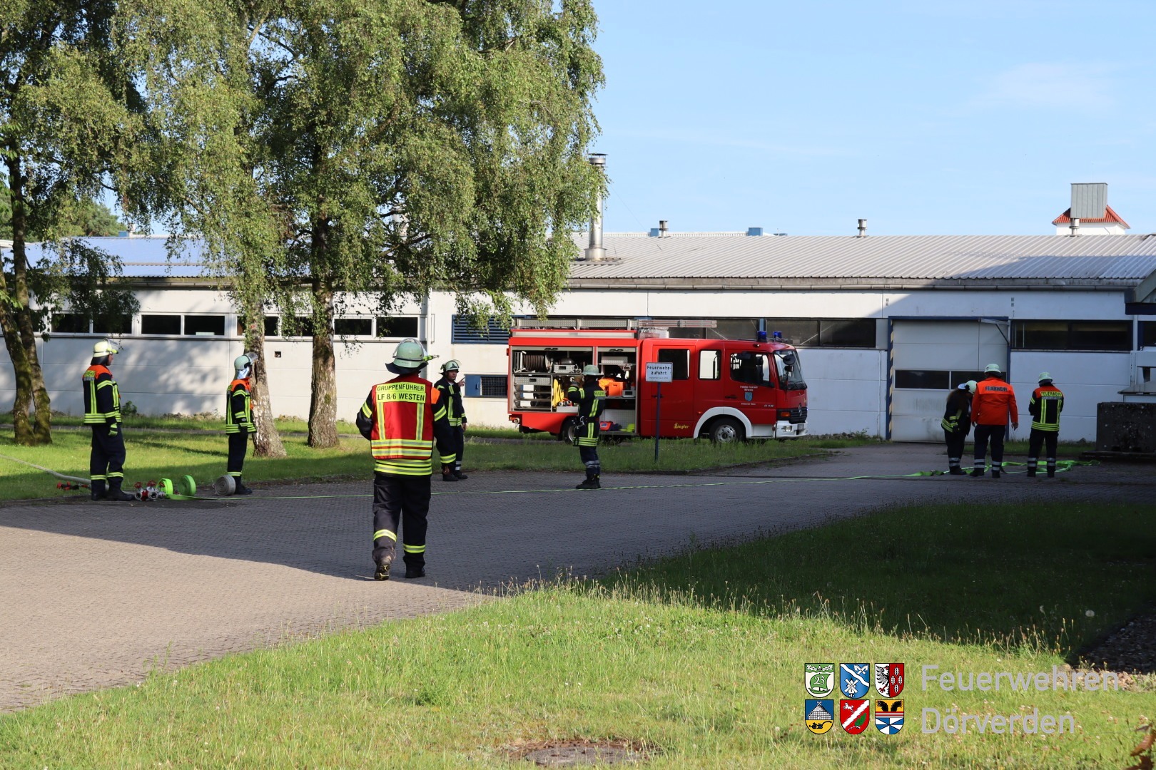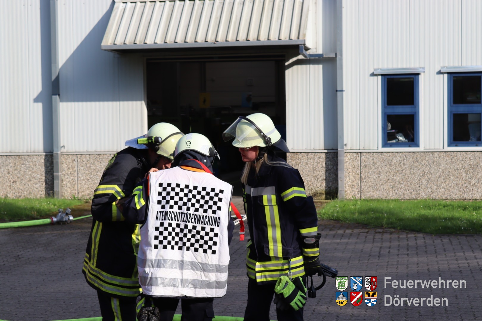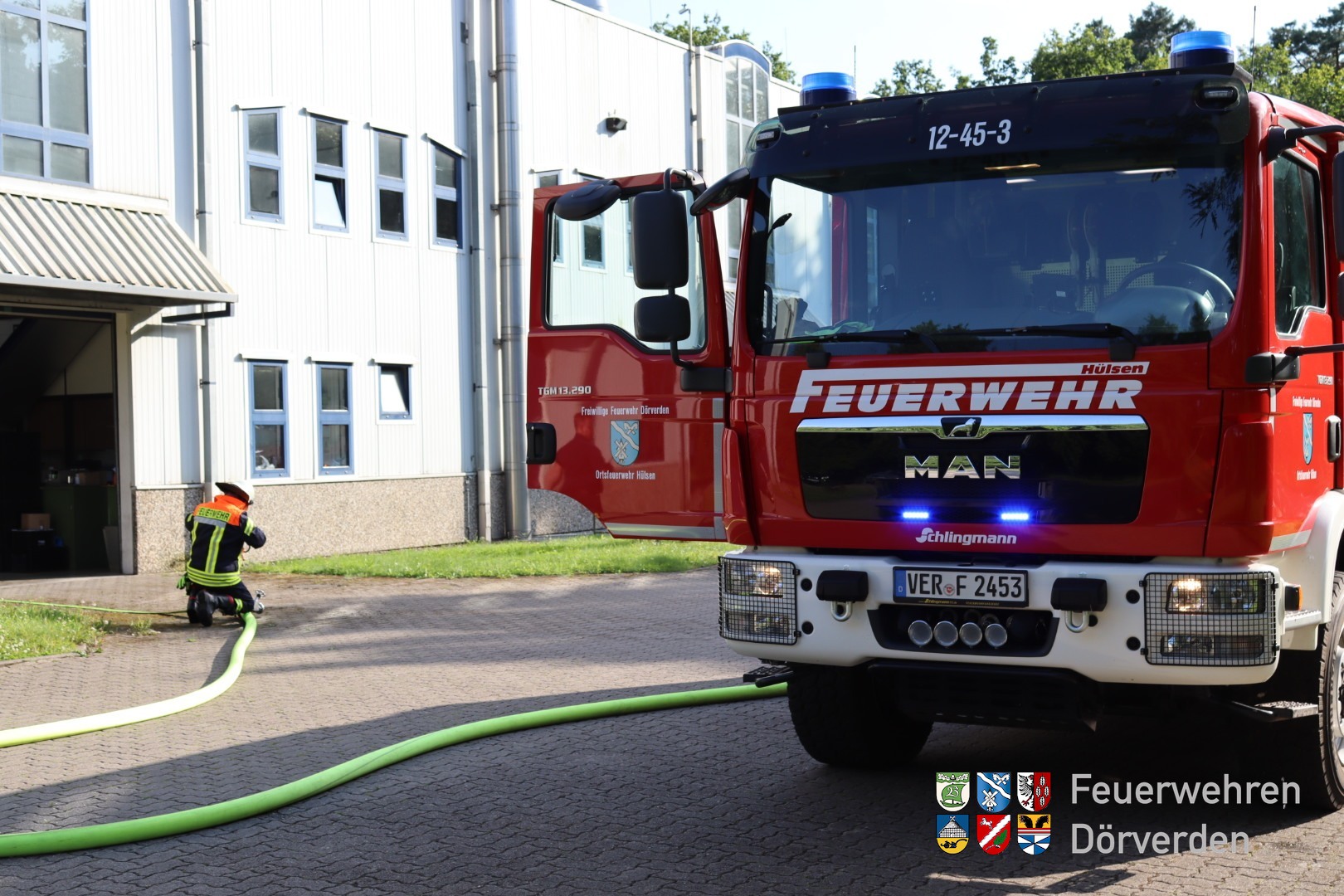 Starke Rauchentwicklung mit zwei vermissten Personen in einer Industriehalle, so lautete das Alarmstichwort am Dienstagabend in Hülsen. Die Ortsfeuerwehren Hülsen, Wahnebergen und Westen rückten umgehen zur Firma NORKA nach Hülsen aus. Dichter schwarzer Rauch drang aus der Lüftungsanlage der Industriehalle und hinter einer Brandschutztür galt es, im dichten Rauch, zwei vermisste Personen zu finden und ins Freie zu bringen. Neben dem Befreien musste auch ein Löschangriff und eine Wasserversorgung über eine längere Wegstrecke aufgebaut werden. Zum Glück handelte es sich bei diesem Einsatz um eine gut ausgearbeitete Übung und niemand wurde ernsthaft verletzt. Die Übung verlief sehr gut und die Einsatzkräfte konnten weitere Erfahrungen zu diesem Einsatzobjekt sammeln.