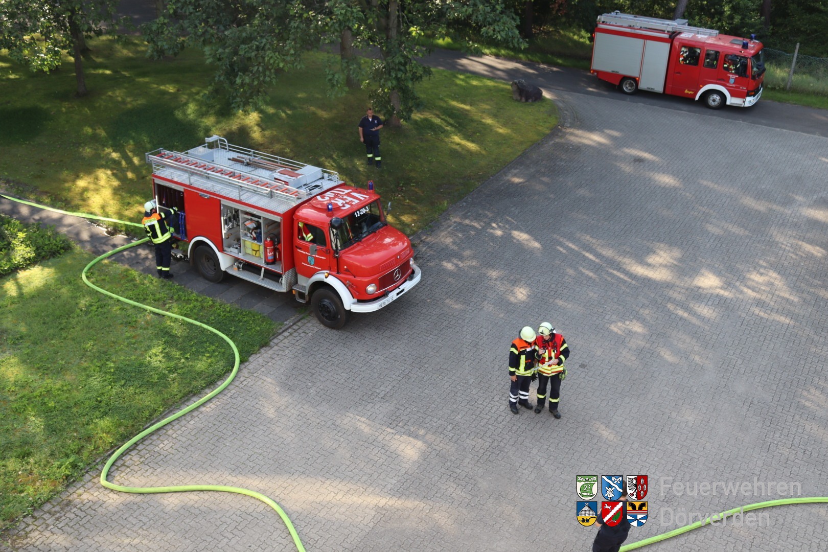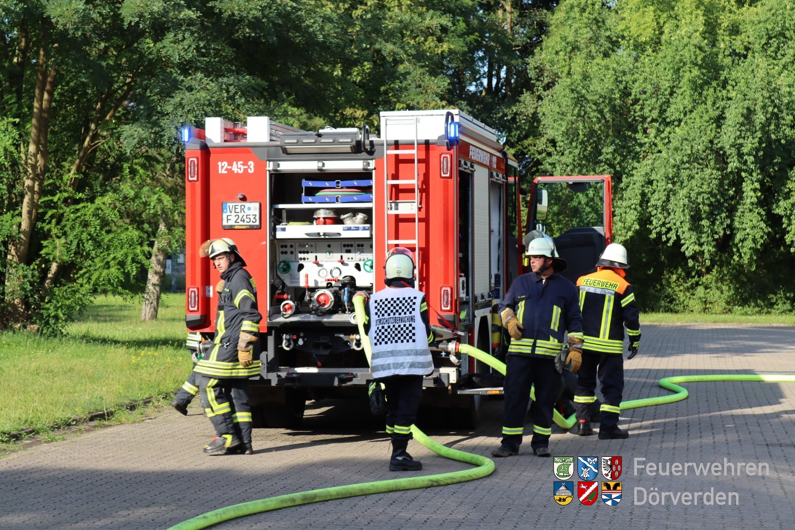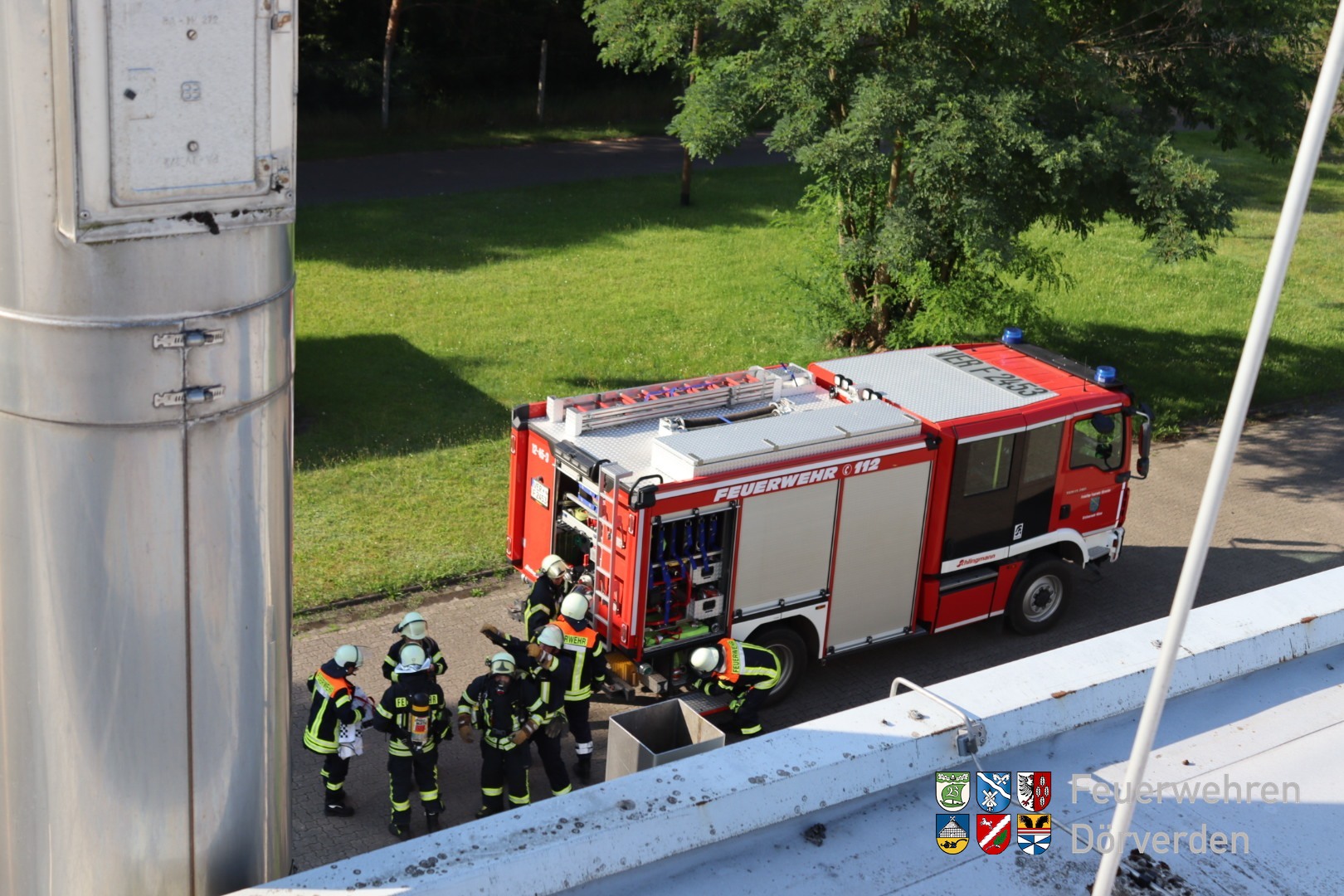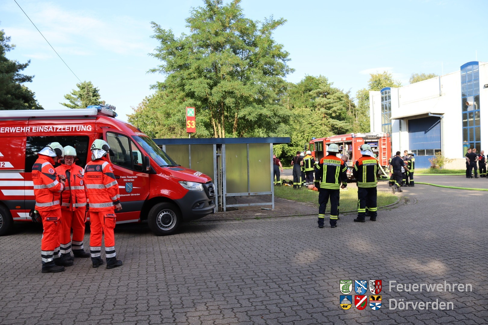 Starke Rauchentwicklung mit zwei vermissten Personen in einer Industriehalle, so lautete das Alarmstichwort am Dienstagabend in Hülsen. Die Ortsfeuerwehren Hülsen, Wahnebergen und Westen rückten umgehen zur Firma NORKA nach Hülsen aus. Dichter schwarzer Rauch drang aus der Lüftungsanlage der Industriehalle und hinter einer Brandschutztür galt es, im dichten Rauch, zwei vermisste Personen zu finden und ins Freie zu bringen. Neben dem Befreien musste auch ein Löschangriff und eine Wasserversorgung über eine längere Wegstrecke aufgebaut werden. Zum Glück handelte es sich bei diesem Einsatz um eine gut ausgearbeitete Übung und niemand wurde ernsthaft verletzt. Die Übung verlief sehr gut und die Einsatzkräfte konnten weitere Erfahrungen zu diesem Einsatzobjekt sammeln.