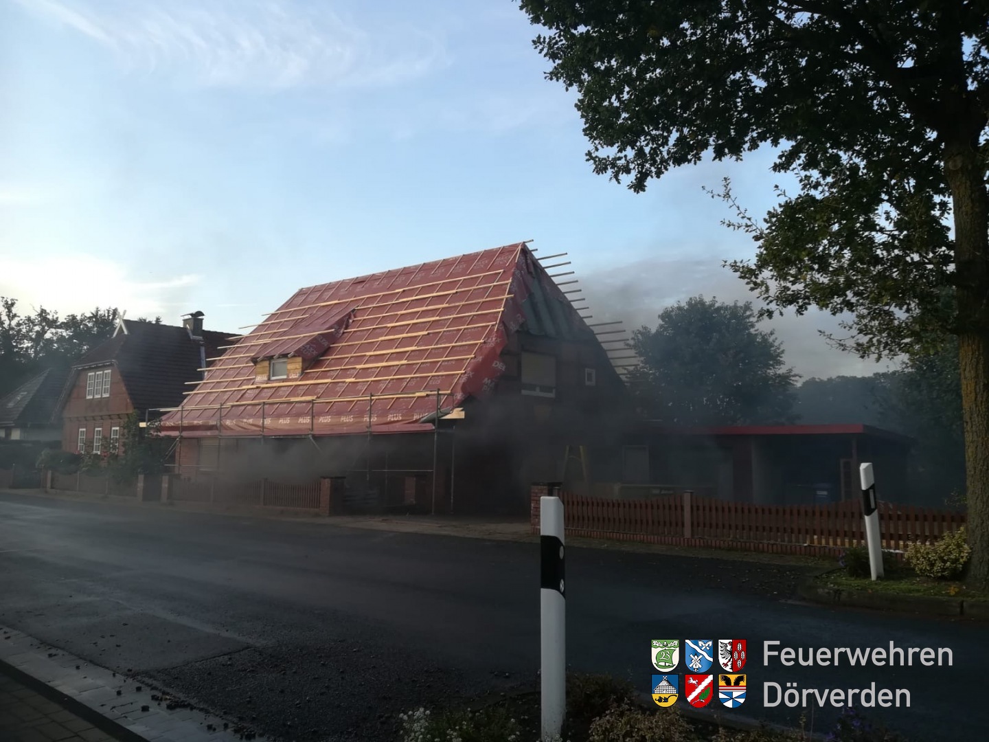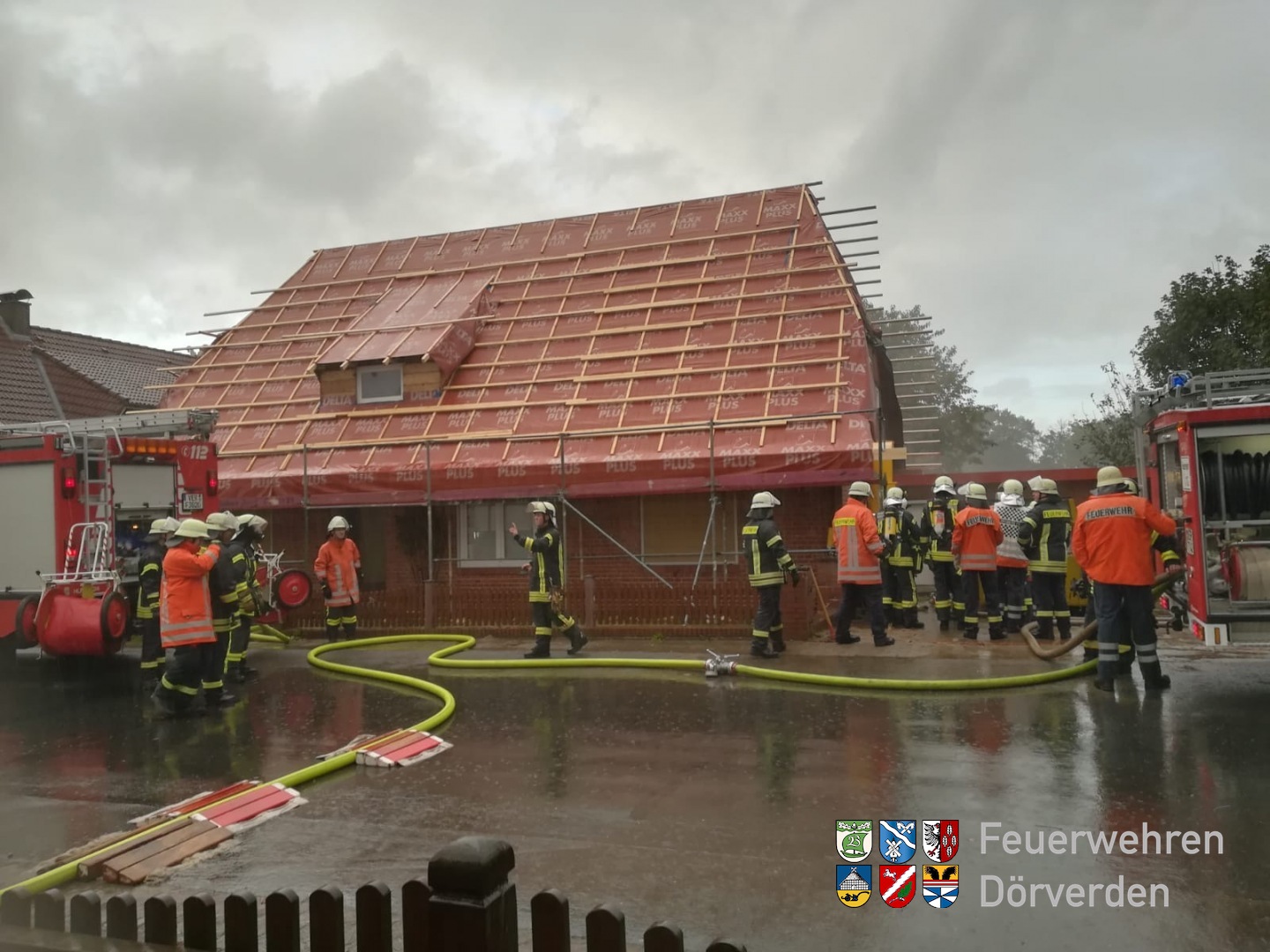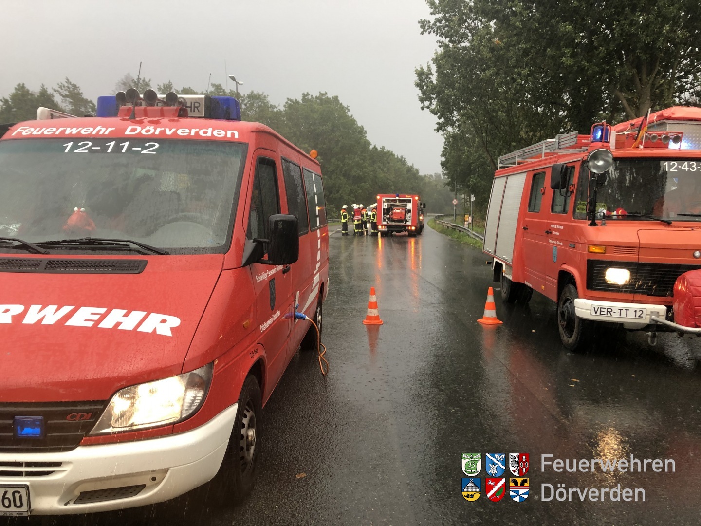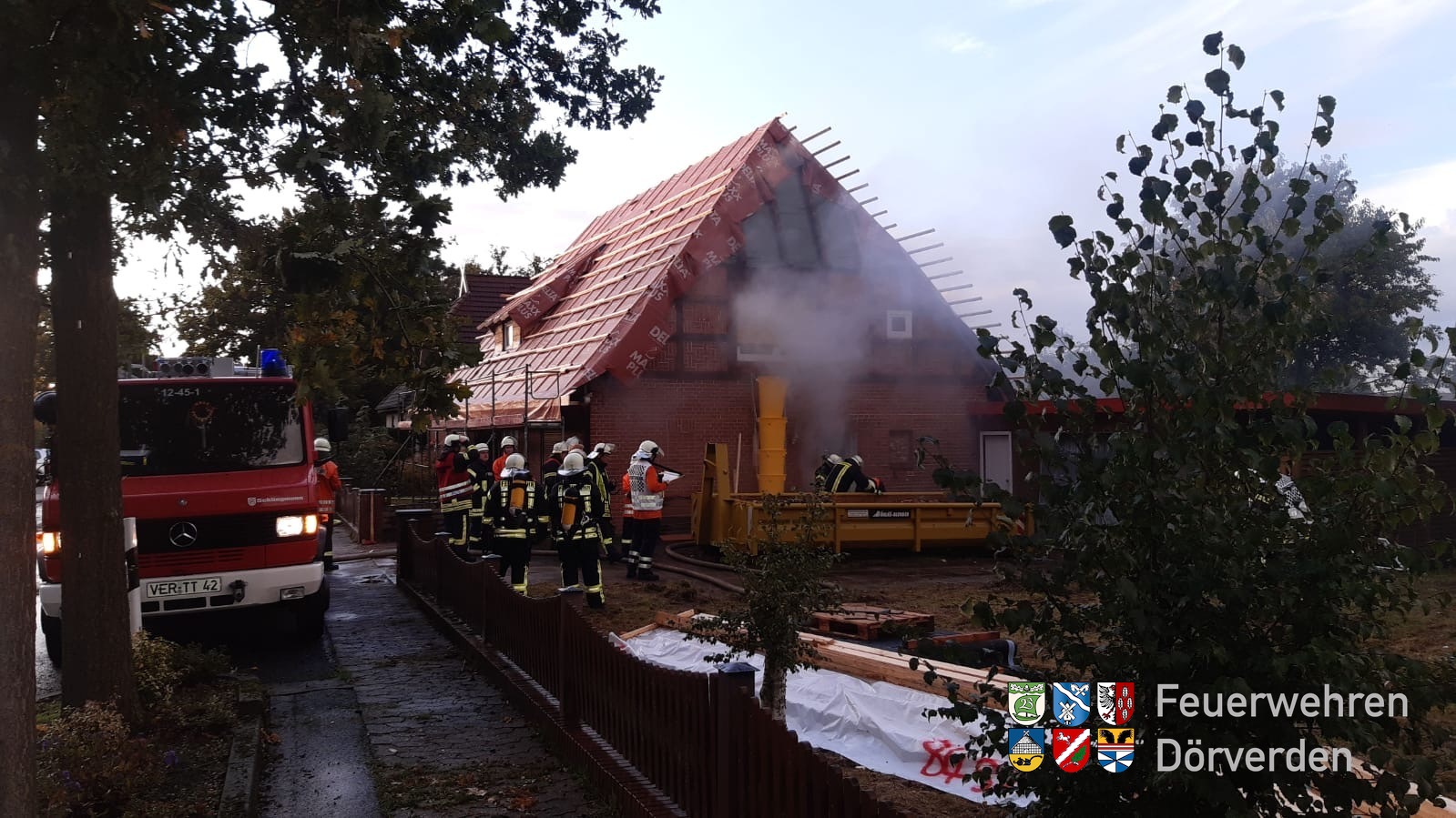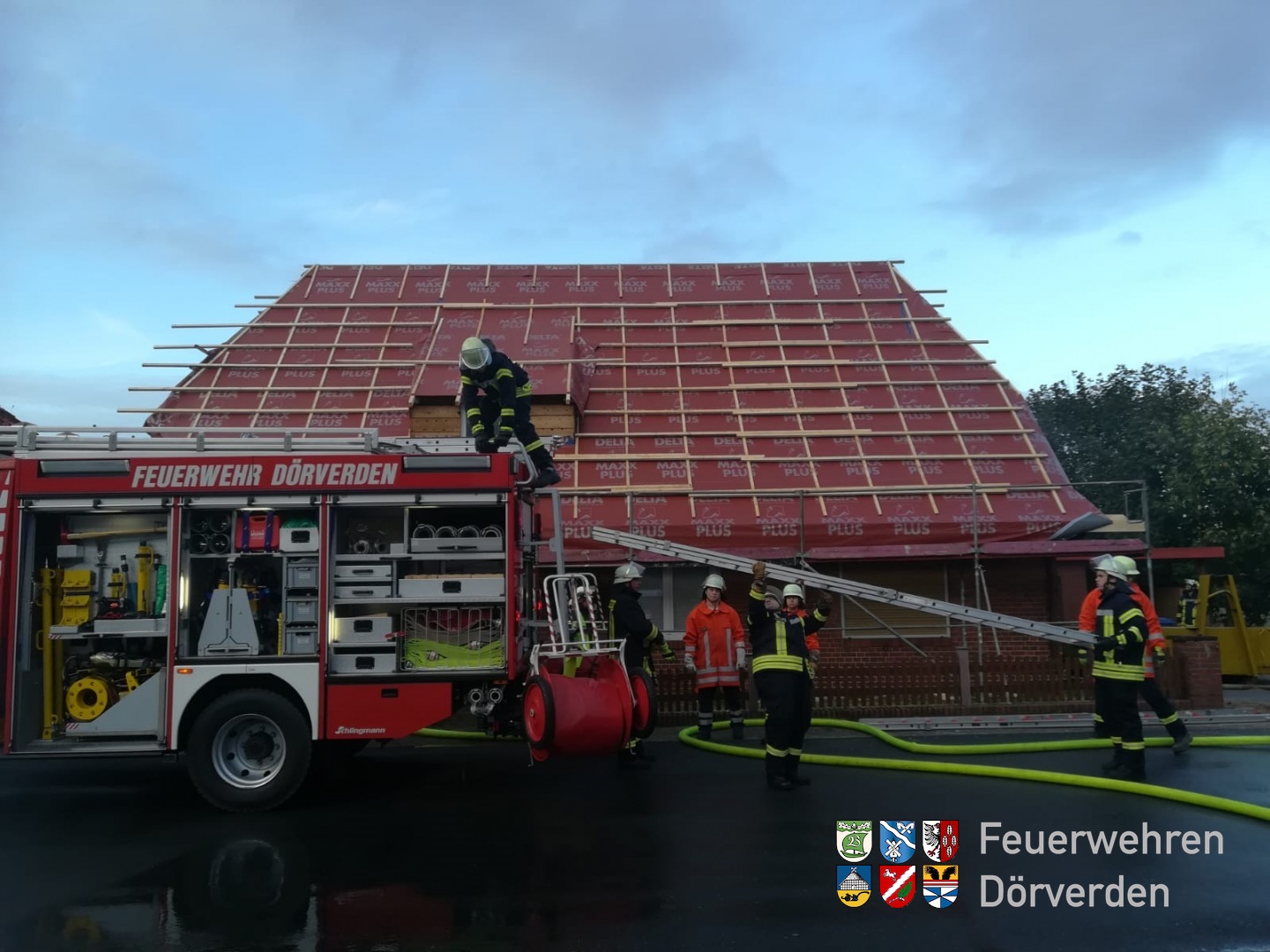 Die Feuerwehren Barme und Dörverden wurden gestern zu einer unklaren Rauchentwicklung in den Beckmannsweg nach Barme gerufen. Beim Eintreffen der ersten Einsatzkräfte stelle sich heraus, dass es bei Arbeiten an einer Heizungsanlage im Keller des Hauses zu einer starken Verpuffung kam. Drei Personen waren durch den starken Rauch im Gebäude eingeschlossen und mussten von Kameraden unter Atemschutz aus dem Gebäude befreit werden. Weitere Einsatzkräfte aus Stedorf wurden zur Unterstützung mit weiteren Atemschutzgeräteträgern nachalarmiert. Nach dem die Lösch- und Rettungsarbeiten abgeschlossen waren konnte die der Einsatz, der glücklicherweise nur eine Übung war, beendet werden. Dem Besitzer des Hauses gilt an dieser Stelle ein besonderer Dank, dass er sein Haus während der Umbauarbeiten für diese Übung zur Verfügung gestellt hat.
