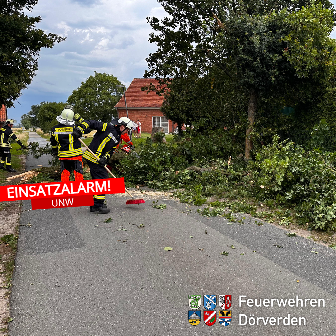 Mehrere Unwettereinsätze haben am gestrigen Abend (02.07.2025) die Feuerwehren im Gemeindegebiet Dörverden beschäftigt.