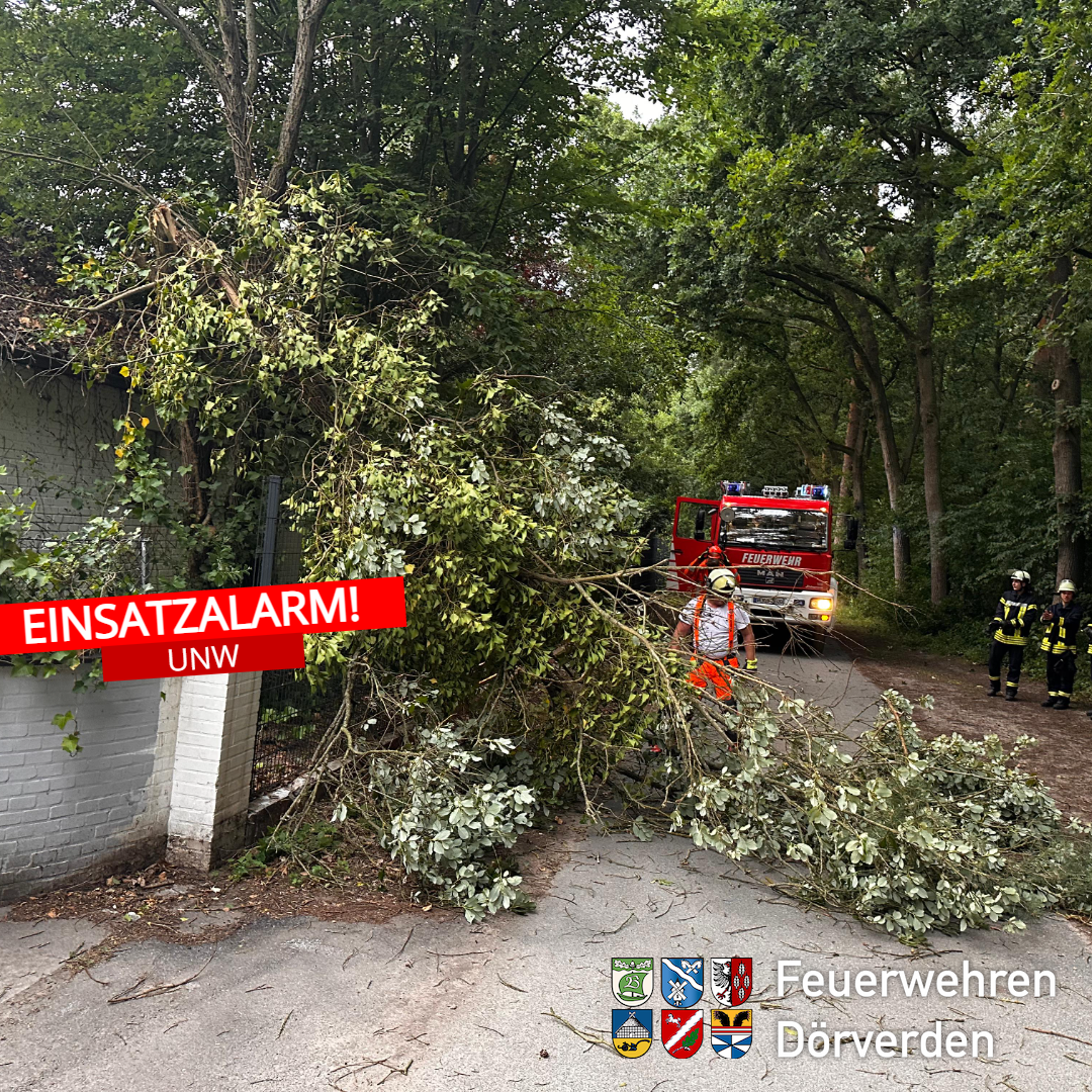 Die Ortsfeuerwehr Dörverden beseitigte zwei weitere Bäume, die durch das Unwetter umgestürzt waren.