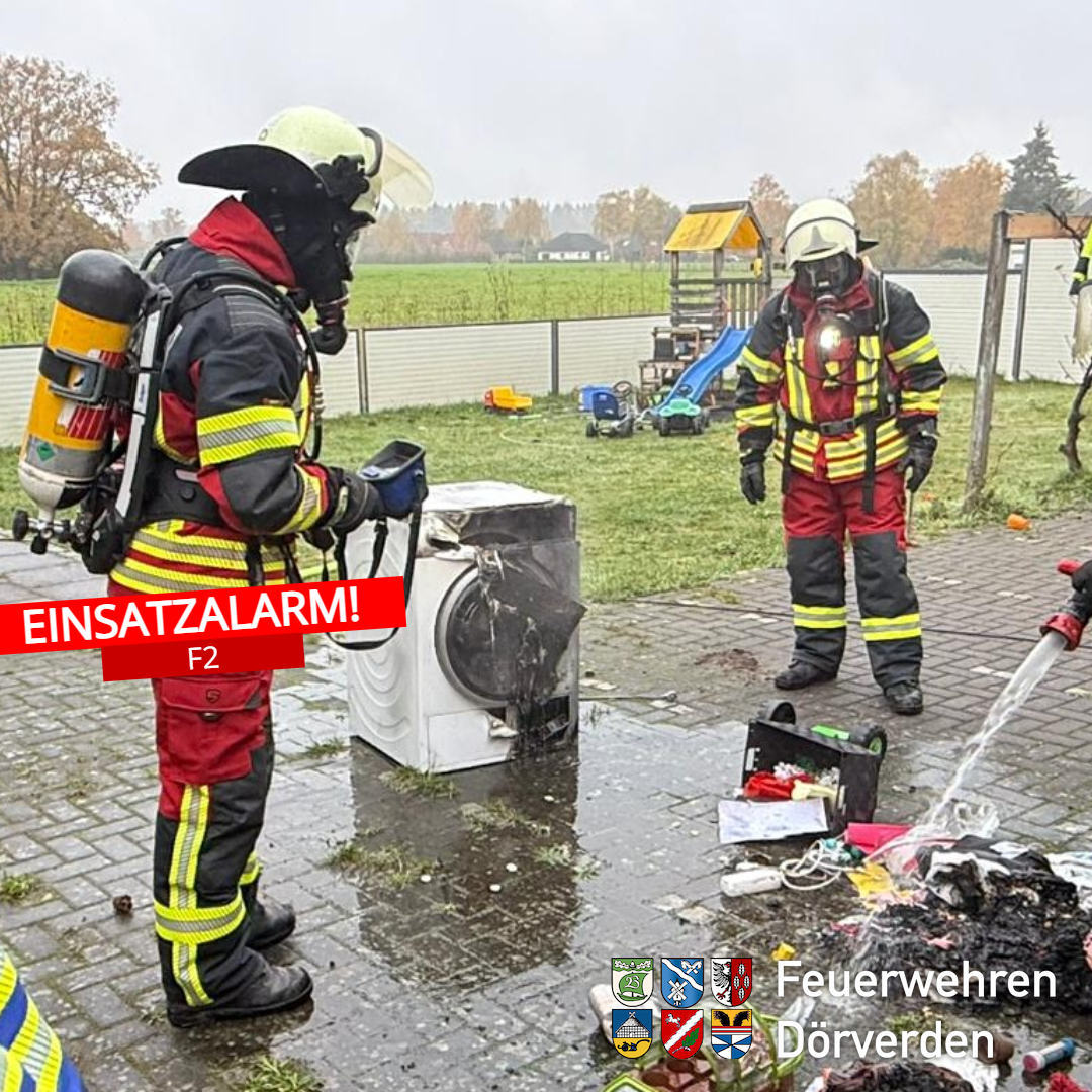 Am Sonntagnachmittag wurden die Feuerwehren aus Dörverden, Stedorf und Barme um 14.04 Uhr zu einem Brand in die Reitbahn in Dörverden alarmiert. In einer Wohnung eines Mehrfamilienhauses hatte aus bislang ungeklärter Ursache ein Wäschetrockner Feuer gefangen. Beim Eintreffen der ersten Einsatzkräfte drang bereits dichter Rauch aus der betroffenen Wohnung. Glücklicherweise konnten sich alle Bewohner rechtzeitig ins Freie retten.
